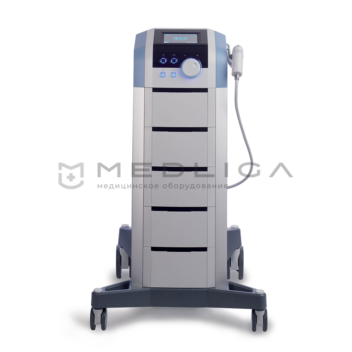 Легкость и мобильность аппарата – незаменимые качества в условиях современного медицинского центра с большим потоком пациентов и многофункциональными процедурными помещениями.