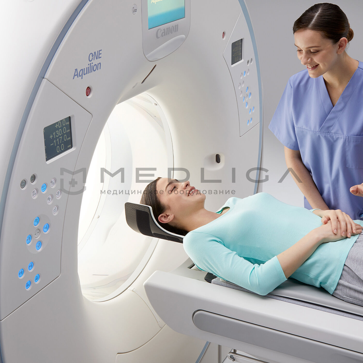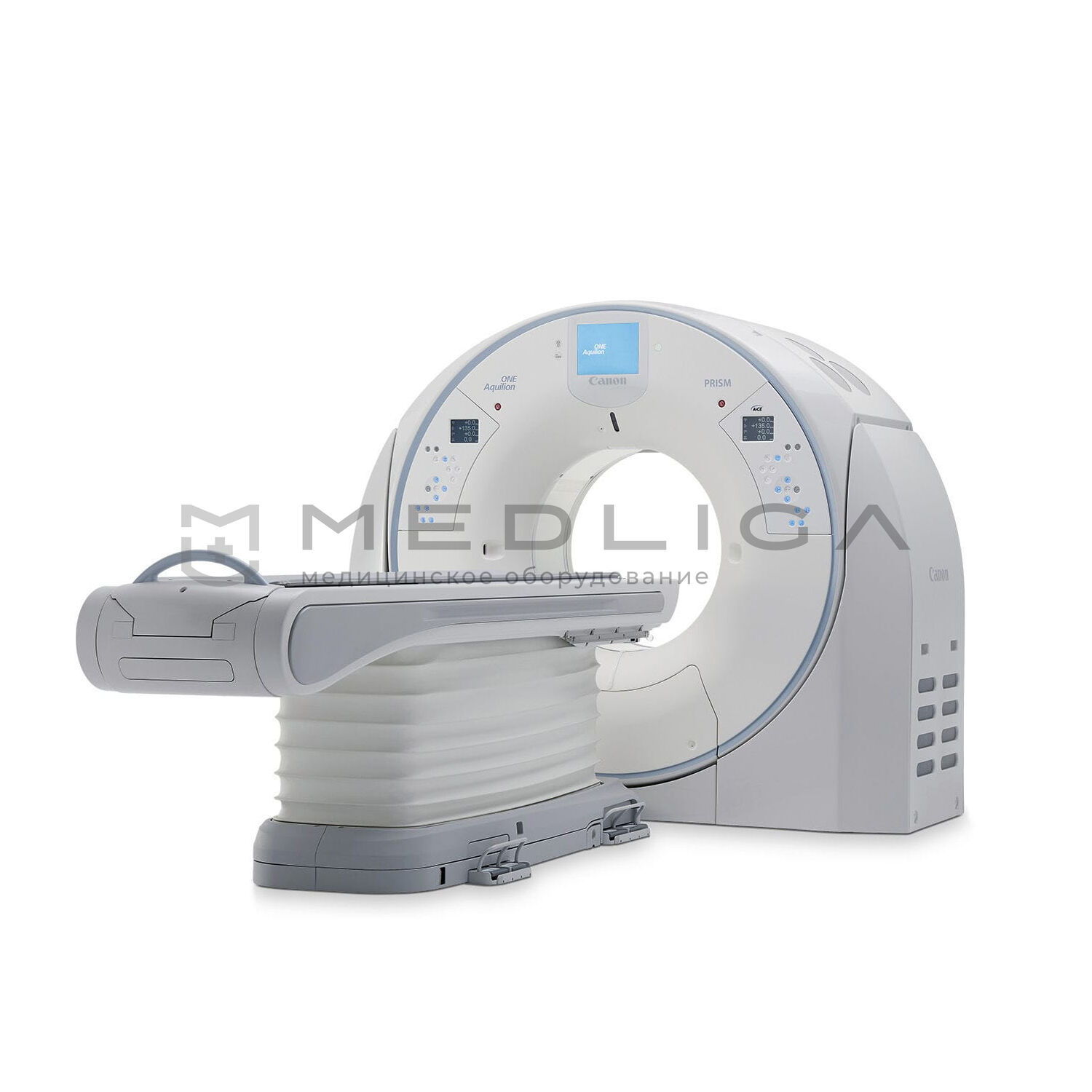 Aquilion ONE (PRISM Edition) – компьютерный томограф спирального типа, позволяющий получить за один цикл 640 срезов благодаря детектору шириной 160 мм. Это позволяет использовать медицинское оборудование Canon Aquilion ONE в диагностике сложных патологий головного мозга, сердца и других органов, где требуется максимально четкая детализация изображения.