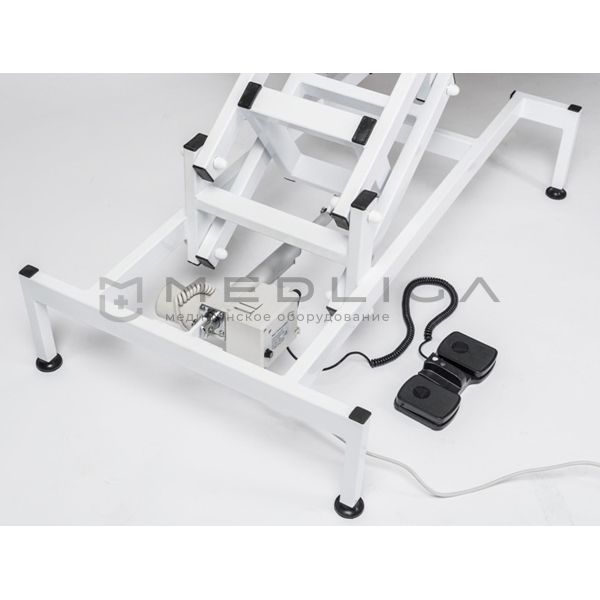 • Высота регулируется с помощью электропривода, регулировка осуществляется ножным пультом управления