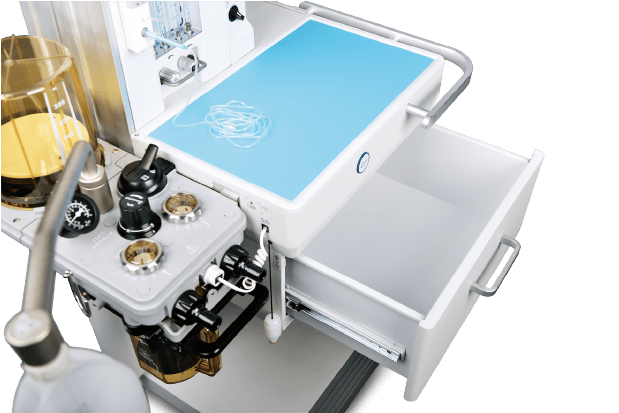 - Индивидуальные регуляторы потока с помощью двойных расходомерных трубок обеспечивают простое и точное управление, облегчают легкую и точную анестезию с минимальным / низким потоком