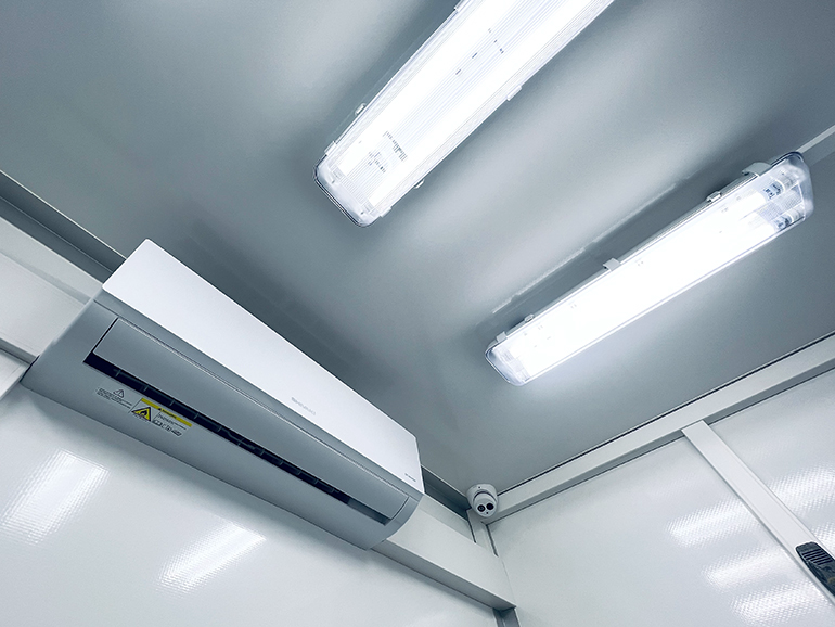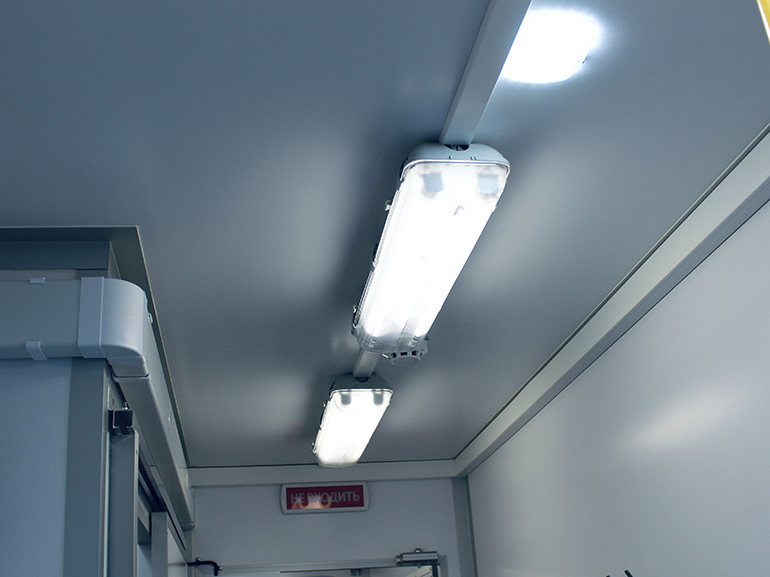 • Основное (220 В ) обеспечивается светодиодными светильниками, установленными на потолке в каждом отсеке.